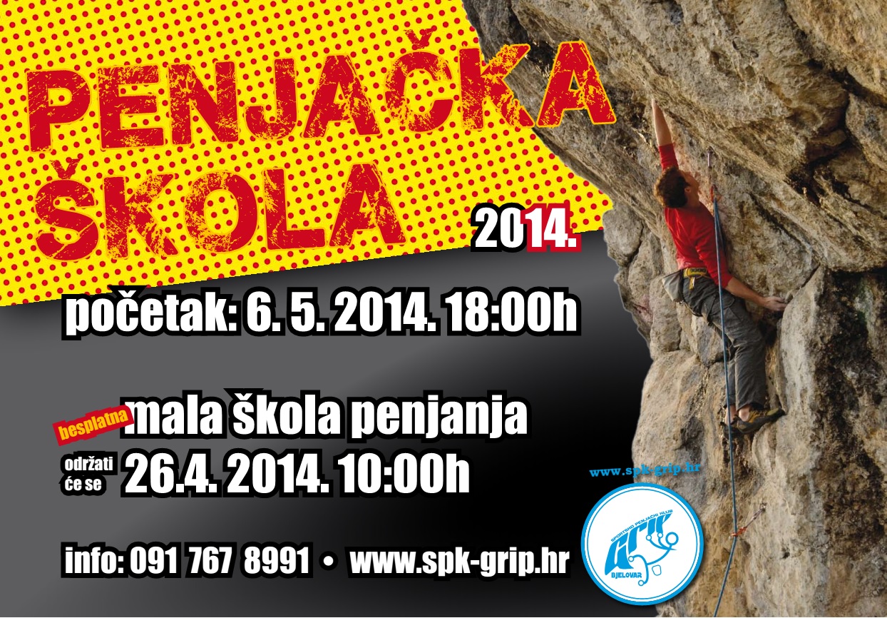 Škola sportskog penjanja u organizaciji SPK GRIP Bjelovar počet će u utorak 06.05.2014. u 18.00h na vodotornju na Boriku.